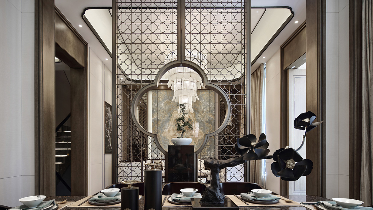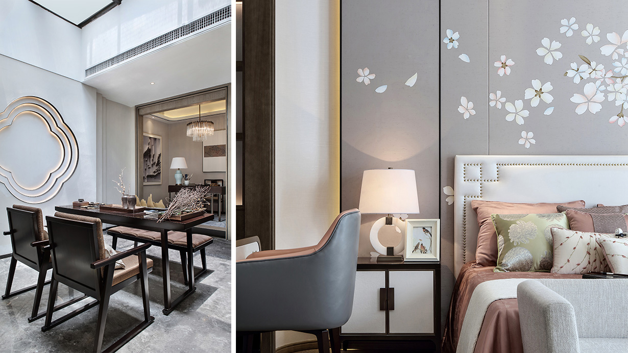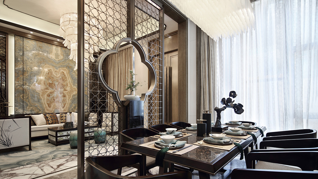 The designer draws on the essence of Chinese culture, positioning the imperial palace as the legendary residence of the three-palace family. And 65 # villa is derived from the silk, embroidery and Chinese flowering apple color, art, form for the element, at the same time, from the tea culture of Chinese landscape on the interior space sequence, artificial blended in more downy elegant temperament.