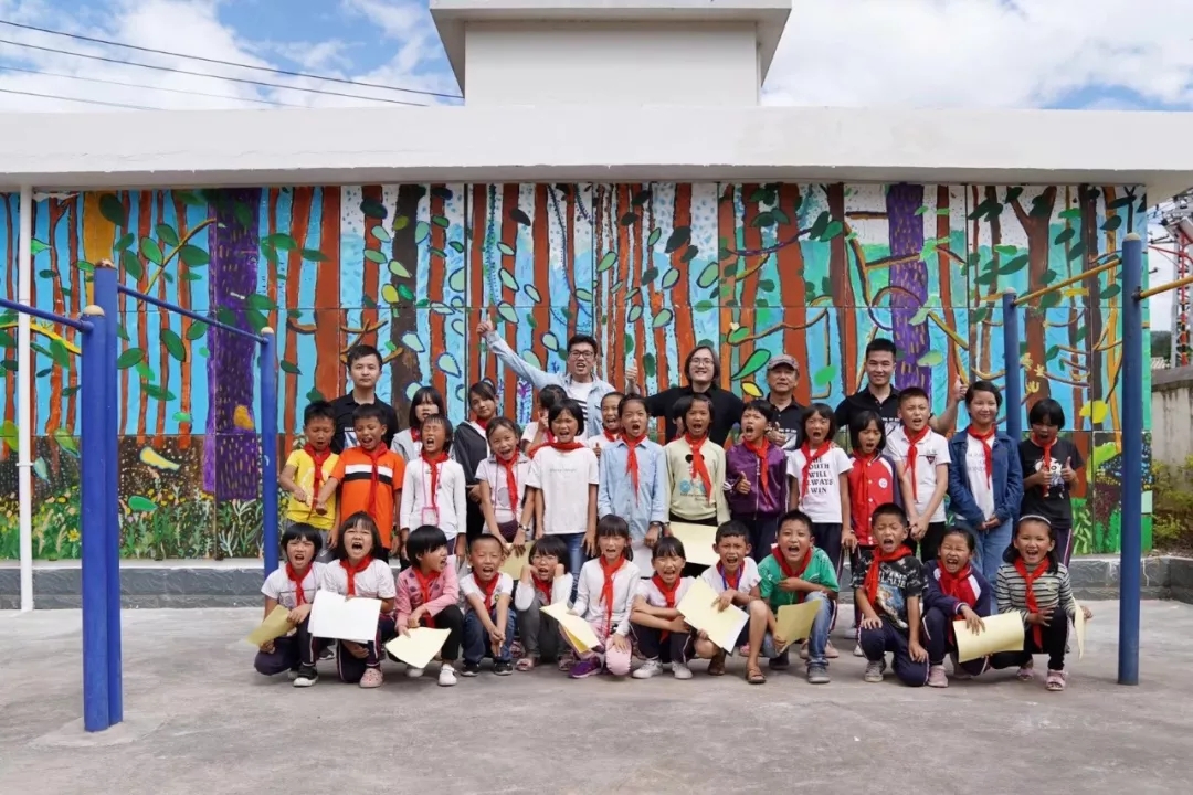 9月20日,美丽乡村艺术课堂第二期暨高校实习基地揭牌仪式正式开始。孩子们在老师的指导下完成了长8.8米高2.8米的丙烯画作品,卓域楼从此有了艺术墙的陪伴。